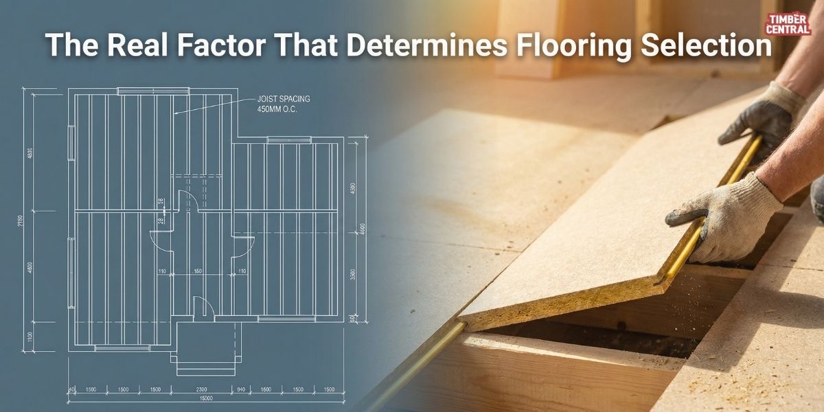 • First: Joist spacing. This determines the appropriate flooring thickness more than anything else.